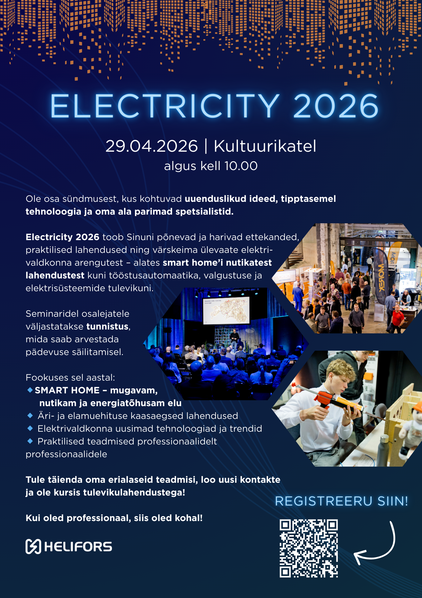 Electricity 2026 Registreerimine on avatud! Tule Electricity messile ja veeda üks põnev ning teadmisterohke päev.