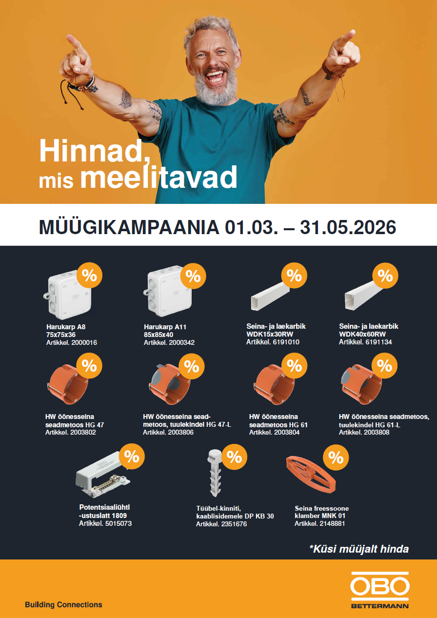 OBO kampaania -Hinnad mis meeldivad! Valitud OBO tooted on nüüd saadaval kampaaniahindadega, et toetada teie projektide kvaliteetset teostust.