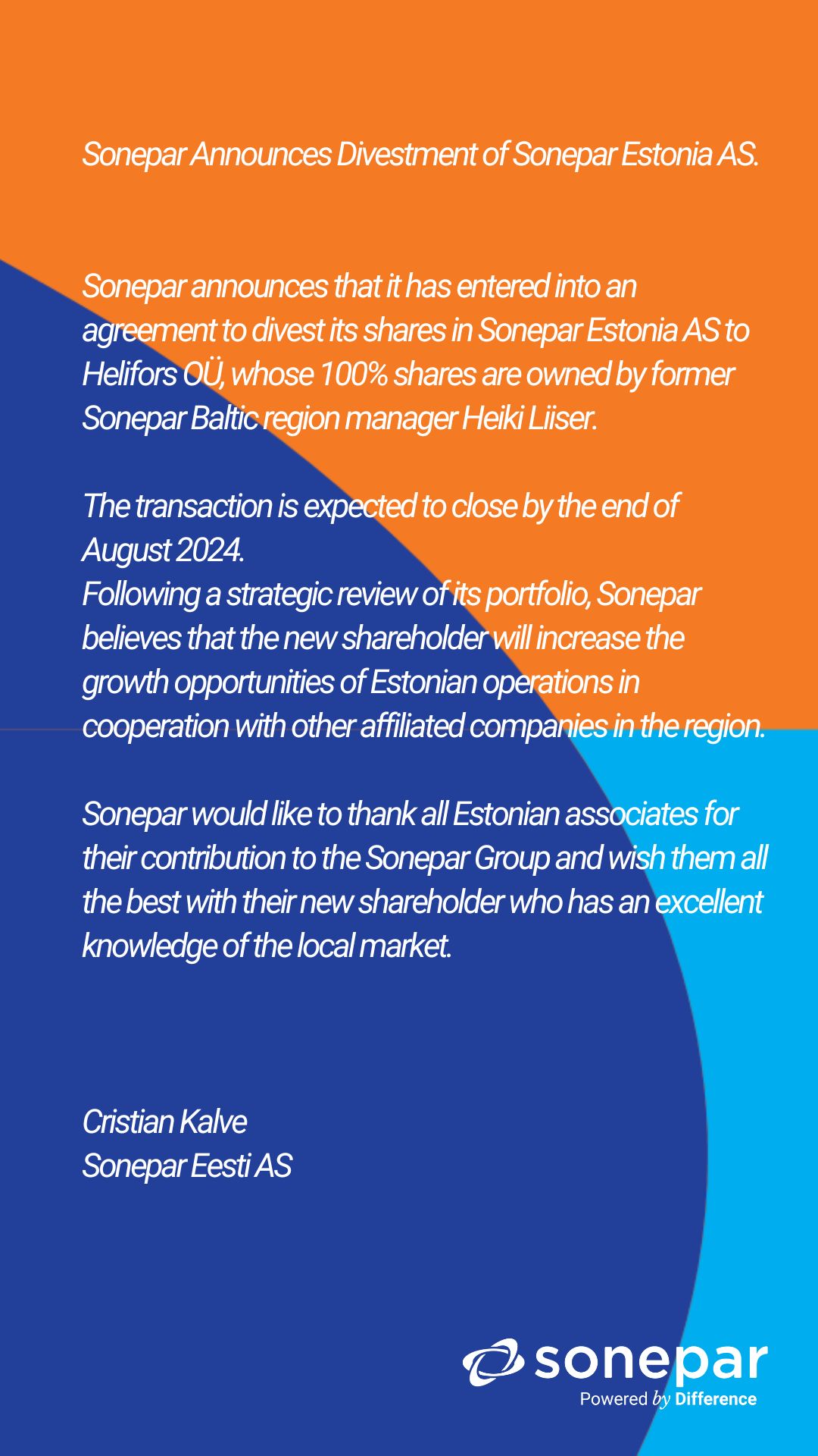 Sonepar Announces Divestment of Sonepar Estonia AS